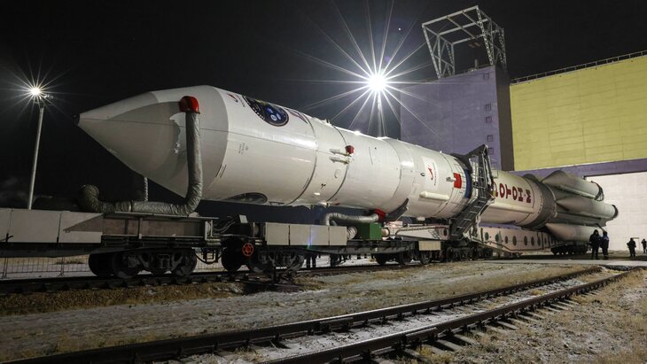 После устранения неполадок запуск перенесли на 12 февраля. За три дня до старта ракету доставили и установили на стартовом комплексе космодрома Байконур.