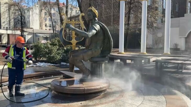 Эти работы стали частью масштабной очистки более 2000 объектов после осенне-зимнего периода, включая мосты, тоннели, переходы, набережные, памятники и фонтаны. Очистка продлится до конца апреля.